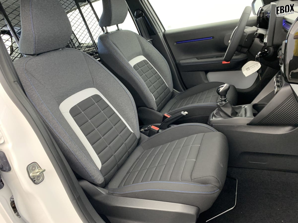 garnissage tissu noir / tissu asphalt avec ambiance urban grey + sièges advanced comfort - comprend les décors sur les panneaux de portes av/ar et sur la planche de bord ultra blue, le siège conducteur réglable en hauteur, les appui-têtes av réglables en hauteur, les accoudoirs de porte av et ar recouverts de textile moussé avec étiquettes « happy tags » (messages positifs), et des poches aumônières au dos des sièges av