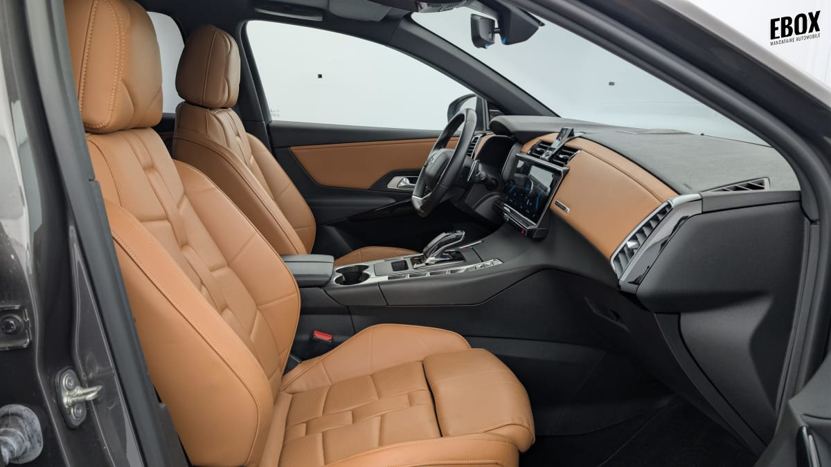 intérieur opera brun alezan : sièges av chauffants commande cristal pare-brise chauffant rétroviseur intérieur électrochrome sans cadre sièges av massants sièges av ventilés seuils de portes en métal avec trame ds volant cuir avec surpiqûres tramontane grille de calandre noir brillant pommeau de levier de vitesses en cuir lisse guillochage « clous de paris » plip avec insert chromé rétroviseurs extérieurs rabattables électriquement et indexés à la marche ar et à mémoire de position avec projection au sol du logo ds décors cuir nappa brun alezan avec surpiqûres "point perle" gris béton sièges cuir nappa brun alezan confection bracelet : +2700.00