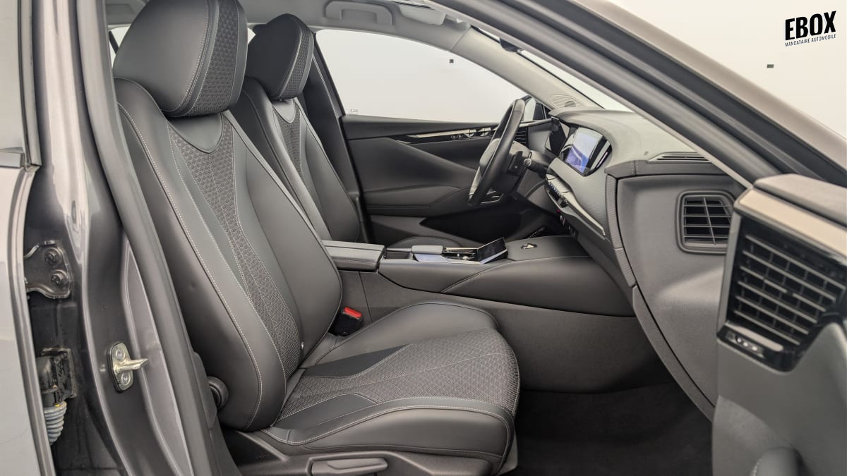 intérieur toile ds noir : plip avec insert trame ds sièges av à haute densité volant cuir gainé avec insert noir brillant guillochage "clous de paris" platine décor noir basalte façon écaille sellerie en tissu diamond tungstène avec toile ds noir basalte