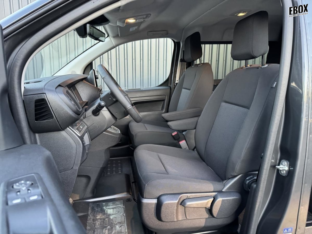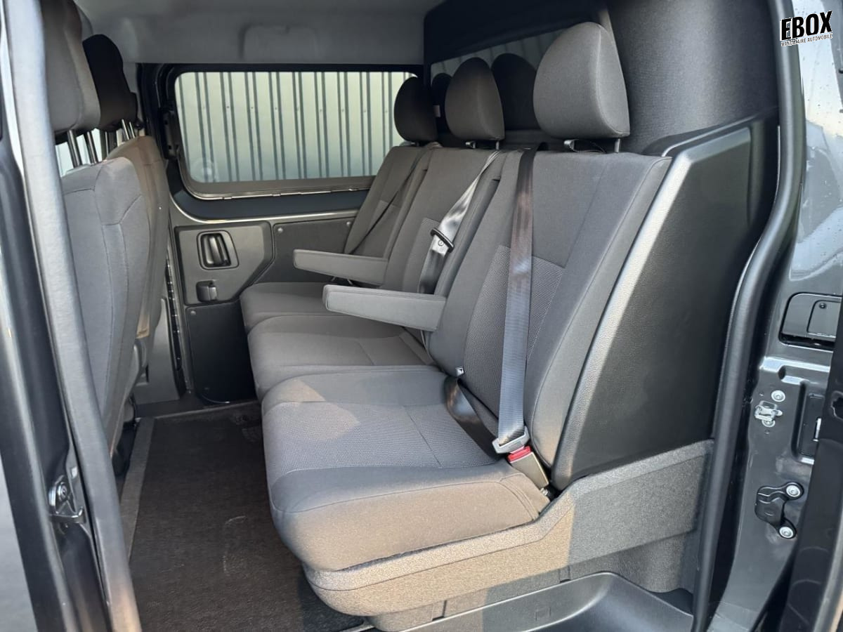 banquette fixe 3 places en rang 2 avec appui-tête réglables et 2 accoudoirs, position unique avec coffre de rangement amovible sous assises gauche et centrale (accessible depuis habitacle) et avec zone pour charge longue sous assise droite (accessible par la zone de chargement)