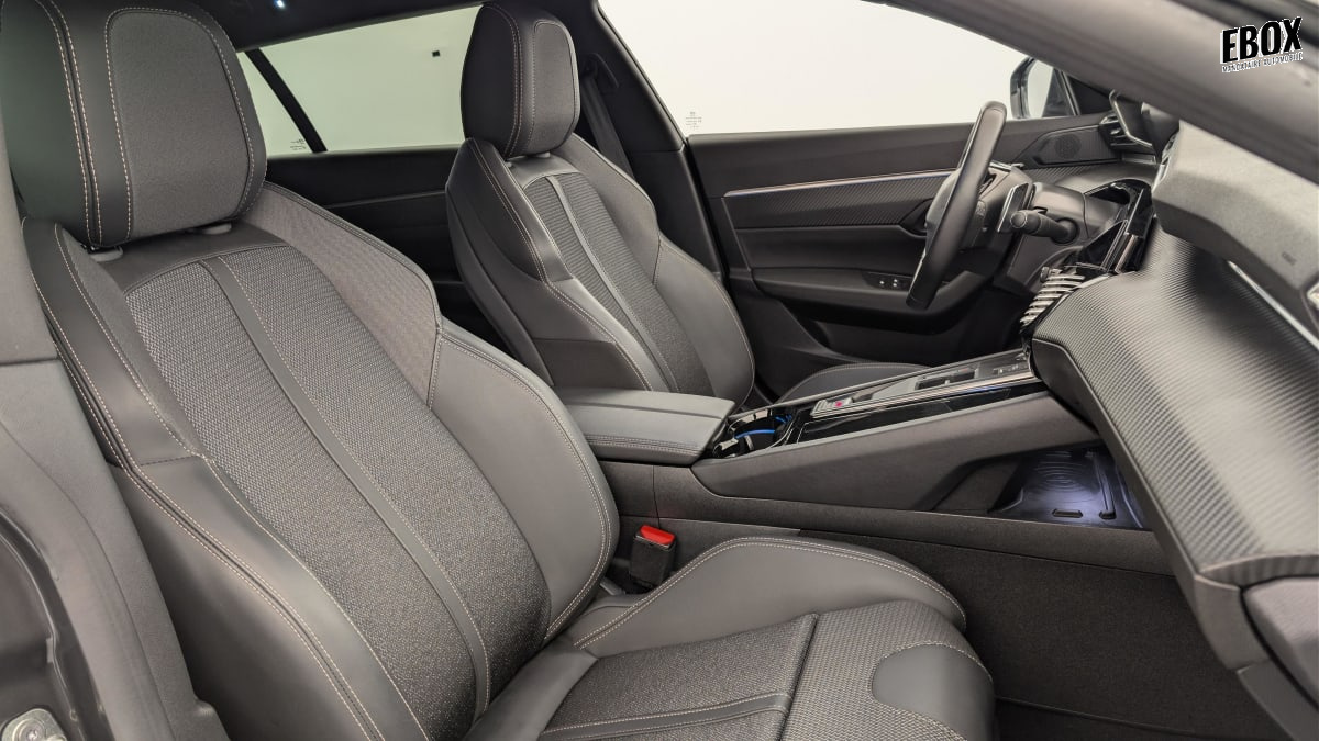 décors de planche de bord et panneaux de portes aspect carbone, et façade de console centrale noir brillant