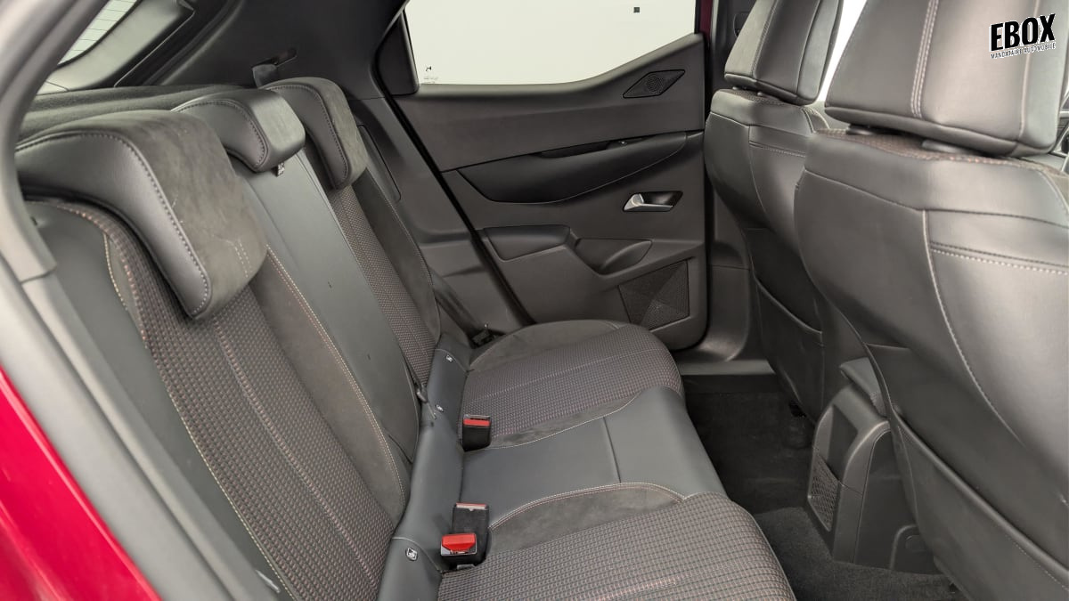 intérieur tissu tressé basalte avec alcantara : planche de bord alcantara noir ciel de pavillon gris galet volant cuir fleur perforé et coutures or et carmin décor alcantara noir siège tissu tressé basalte avec alcantara