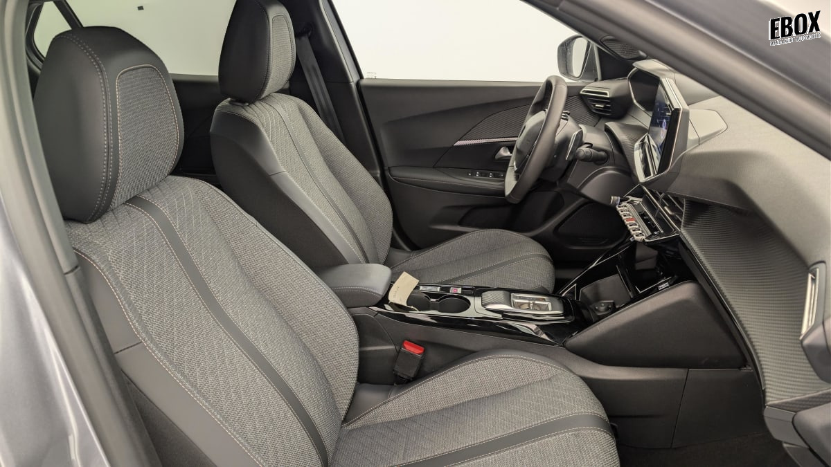 eléments de style intérieur: panneaux de portes av avec décor carbone et baguette noir brillant avec tampographie quartz, accoudoirs de porte av/ar tissu/tep isabella avec surpiqûre quartz