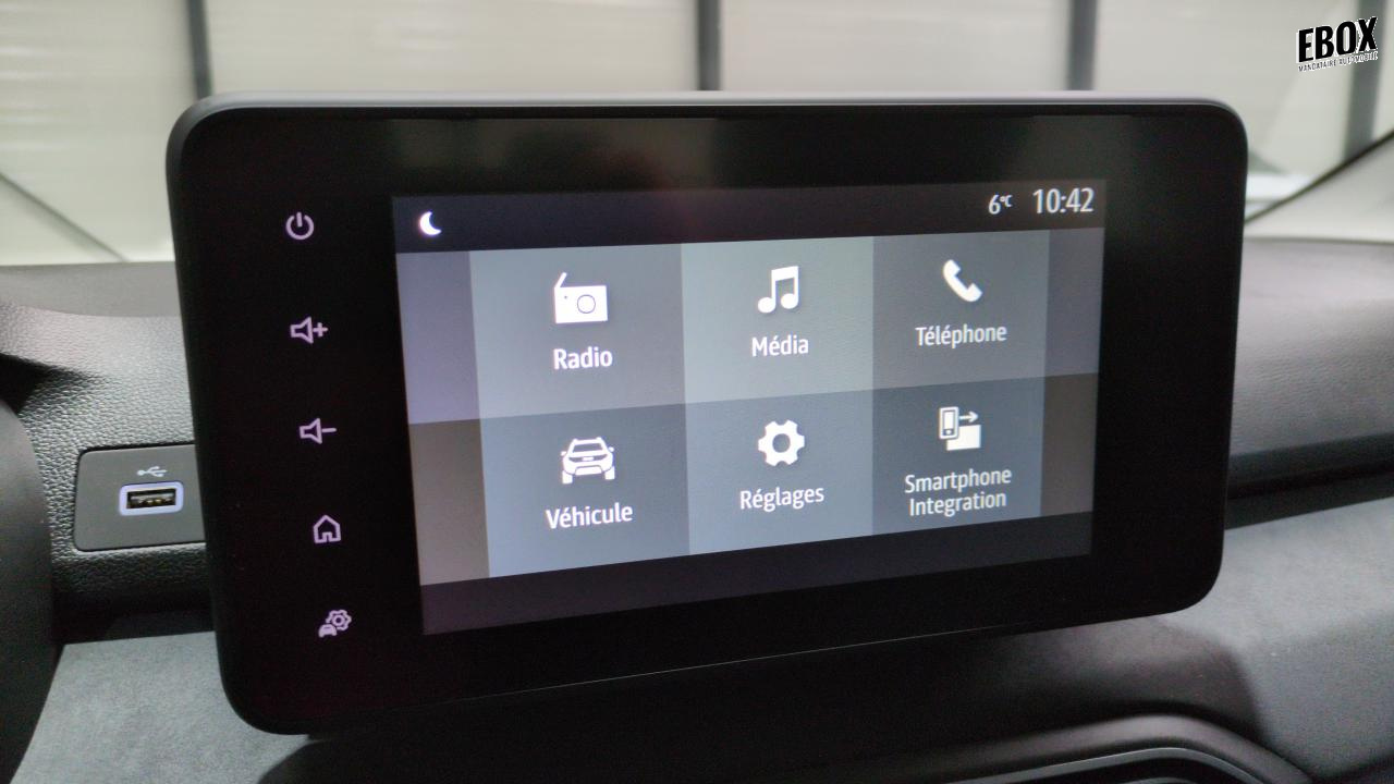 media display : ecran tactile 8'' sans navigation + radio + réplication smartphone usb + 4 haut-parleurs audiostreaming bluetooth + satellite de commandes au volant + 1 prise usb-a et 1 prise usb-c