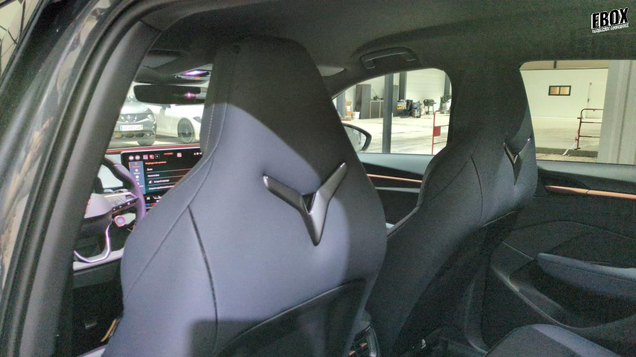 design intérieur deep ocean (sièges baquets tep + textile bleu acier) - logos cupra estampés sur les appuie-têtes - planche de bord bleu acier texturée avec aérateurs cuivrés - contre-portes en tep noir texturé - ciel de pavillon noir - sièges conducteur et passager avec réglage manuel en hauteur et lombaire