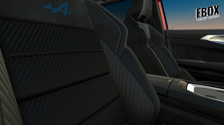 sellerie mixte tissu carbone alcantara® avec surpiqûres bleu